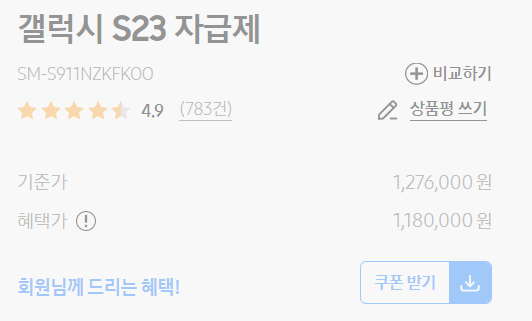 | 갤럭시 s23 | 939,400원(G마켓) | 1,073,250원(G마켓) |