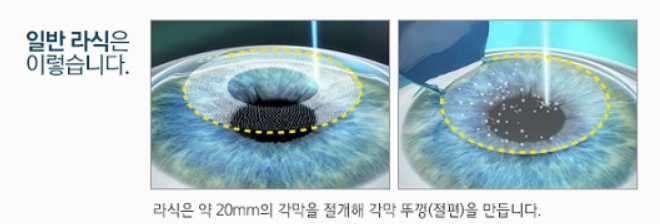 이 기구가 일회용 소모품이기 때문에 일반 라식과 라섹에 비해 가격이 비싸게 구성되어있습니다. 다만 가격이 비싼 만큼 각막 절개를 최소화하여 각막 손상이 적고 회복이 빠르다는 장점이 있어 많은 분들이 선택하는 추세입니다.